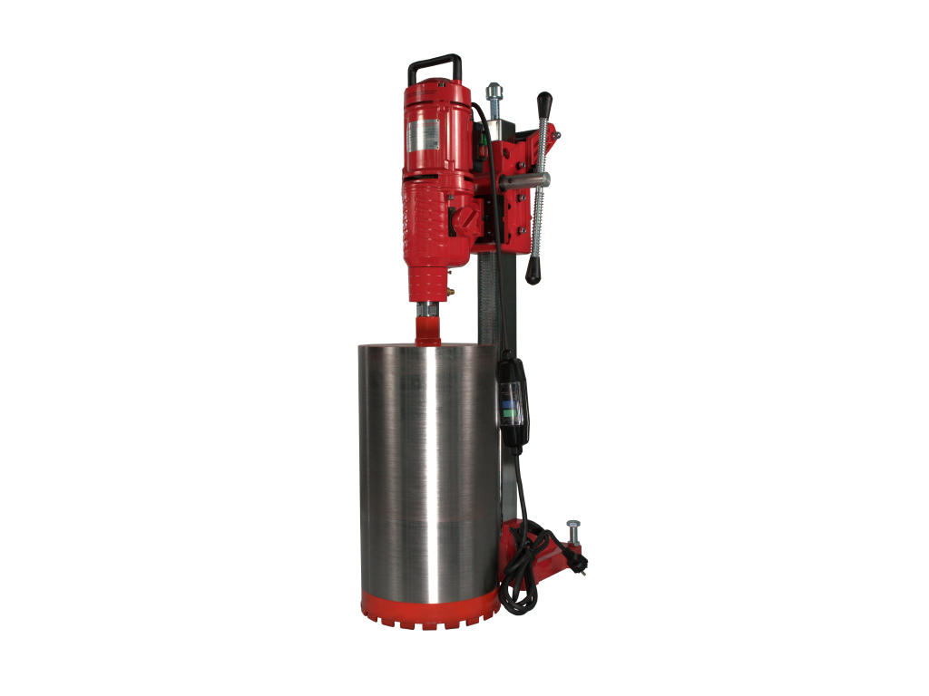 - PRCD переключатель на 3-х метровом кабеле обеспечивает безопасность работы и предохраняет электросистему алмазной сверлильной установки от скачков напряжения в электросети;